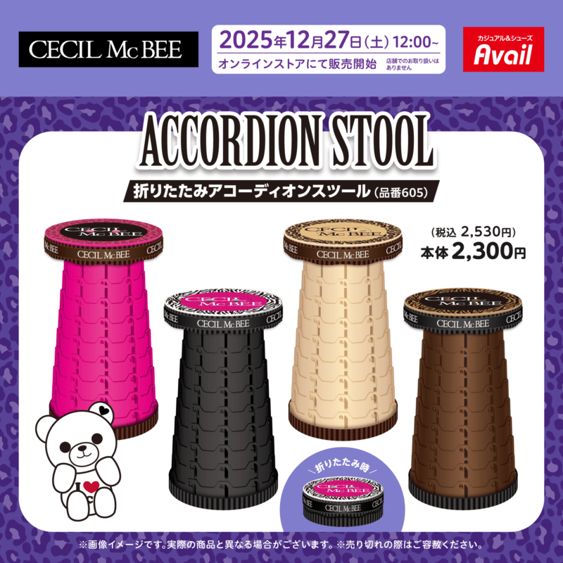 - アベイル『セシルマクビー(CECIL McBEE)』コラボ!折りたたみアコーディオンスツール2025年12月27日(土)より発売!