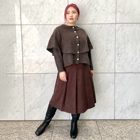 肩まわりをケープ風デザインで覆ったケープ風ニット。