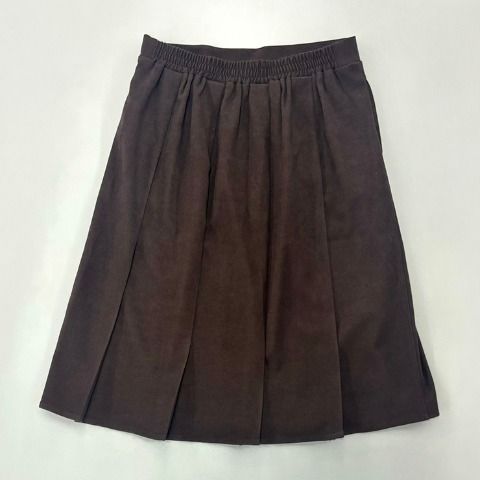 大きめのプリーツが目を惹くミモレ丈のスカート。