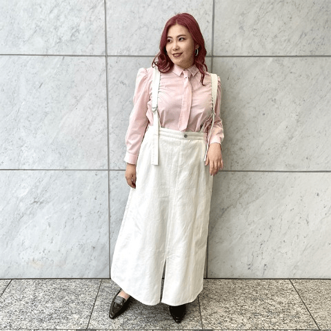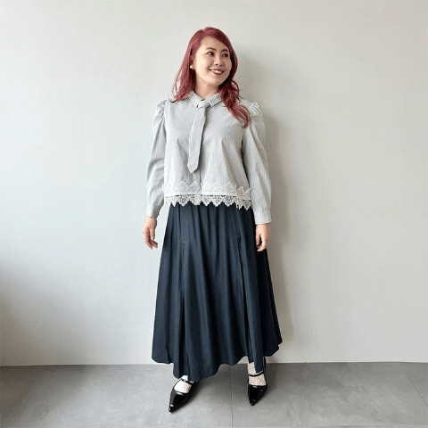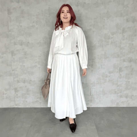 単品ではもちろんのこと、同素材のリボンブラウスとのセットアップ着用もオススメです。