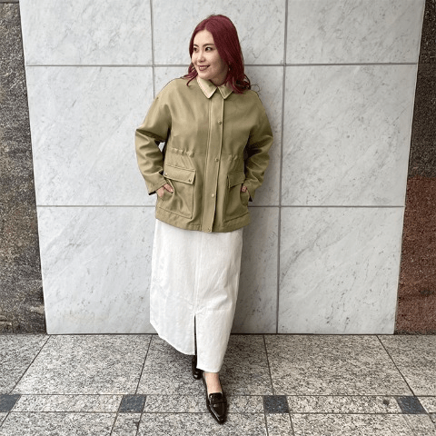 単品ではもちろんのこと、同素材のフレアスカートとのセットアップ着用もオススメです。