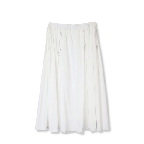 スカートは低めの位置で切り替えを施し、広がりすぎない上品なフレアシルエットに仕上げました。
