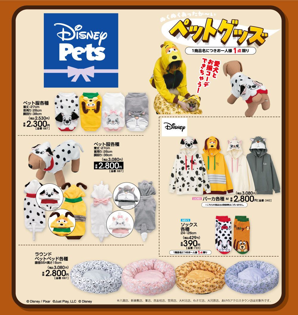 しまむら系列アベイルでは、『ディズニー』コラボのペットグッズ取り扱いを開始しています。