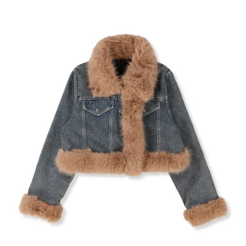 ヴィンテージ感のウォッシュ加工を施したデニム生地とふわふわのボリューム感あるファー素材。
