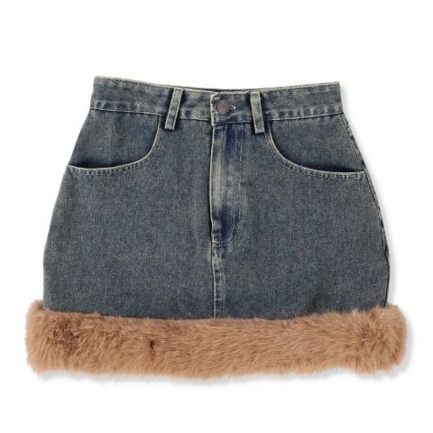 ハイウエストが細見えを叶える、裾ファーデニムミニスカート。
