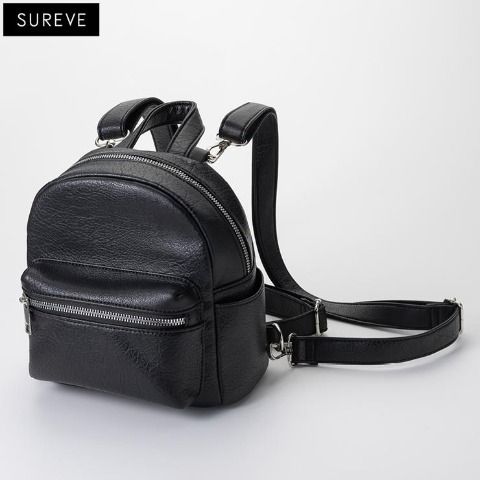 フロントにはファスナーと合皮ベルトを3か所施し、モード感のあるスタイルに。