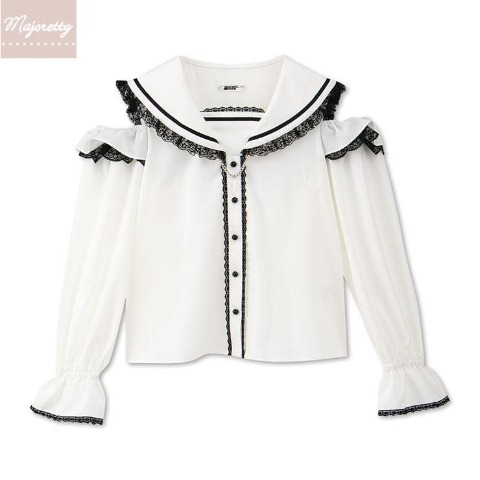 えすちゃんコラボ、セーラーカラー肩開きブラウス。
