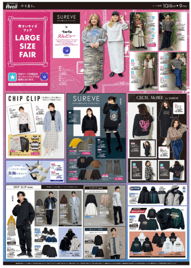 【2025年10月4日(土)~】のアベイルのチラシの詳細をまとめます。