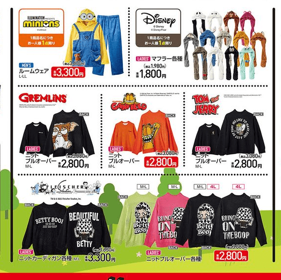 ニット、ルームウェア、マフラーなどのキャラクターアイテムも充実!