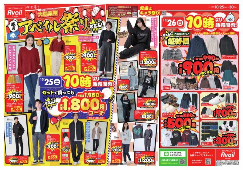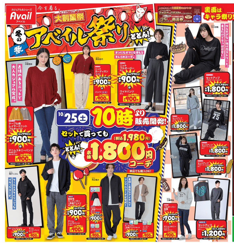 カジュアル&シューズのアベイルでは、10/22(水)より2週にわたり「アベイル祭り」を開催します。