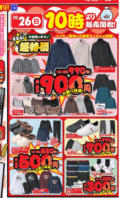 10/25(土)には、バイヤーが厳選したお得なコーデや、かわいいキャラクターグッズを多数販売します!