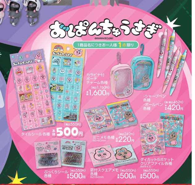 『おぱんちゅうさぎ』コラボ!タイルシール、カラビナ付きポーチ、クリアファイルなどのステーショナリーが発売!