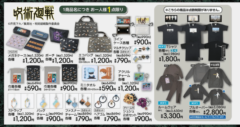 アベイル『呪術廻戦』コラボ!トレーナー、ポーチ、チャーム、タオル、クリアファイルなどが2025/12/13より新発売!
