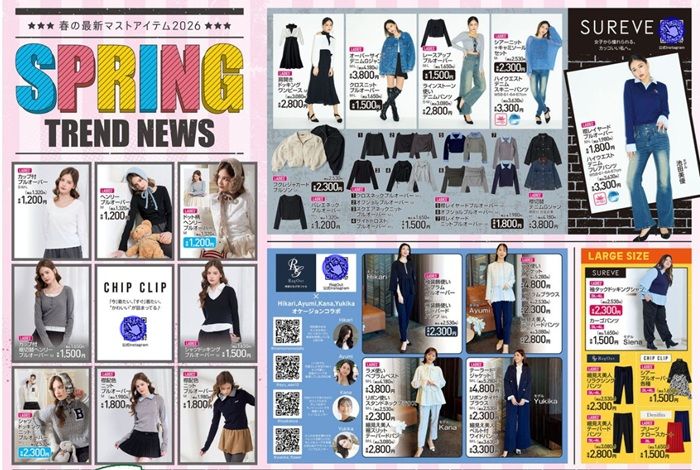 キレイめから、カジュアル、大きいサイズまで、春のトレンドアイテムが販売します!お手頃価格なアパレルも多く要チェックです。