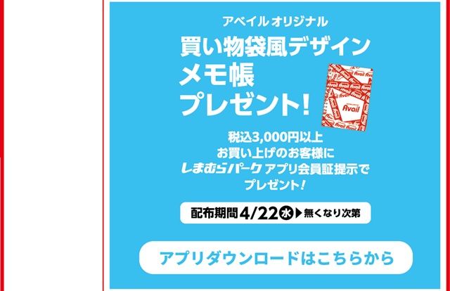 また、ノベルティ商品で、買い物袋風デザインのメモ帳も配布されます。