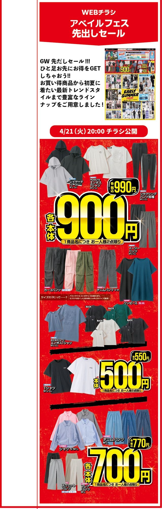 4月22日(水)より『アベイルフェス先出セール』が開催