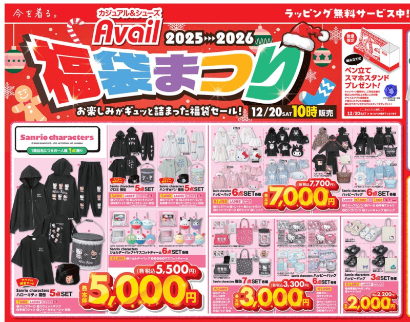 アベイル福袋!2026年ネタバレ・中身・口コミ・予約・チラシまとめ!キャラクターコラボ・ブランドも!オンラインストア先行、歳末、初売りも実施!