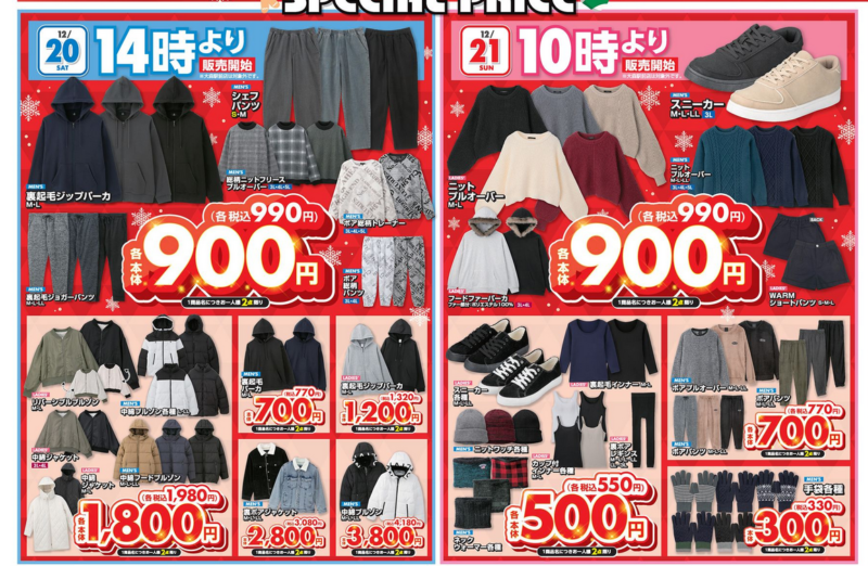 各日程で、スペシャルプライスのアイテムが販売します!
