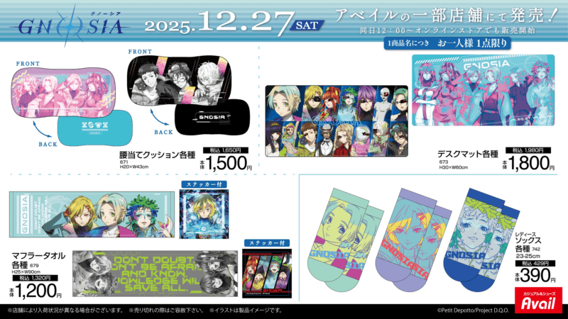 アベイル『グノーシア』コラボの発売日、ラインナップ、種類、品番、販売方法、販売状況、再販売、口コミ、オンライン通販、販売店舗、チラシなどをまとめます。