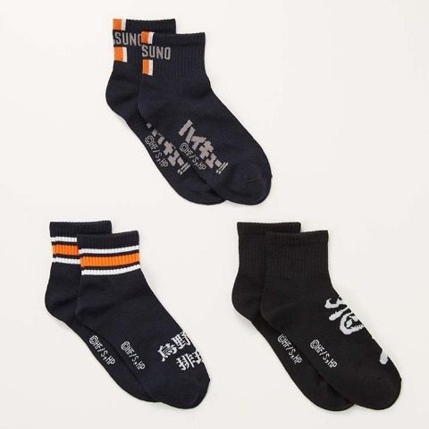 烏野高校をイメージした異なる柄バリエーションが嬉しい3足セットです。