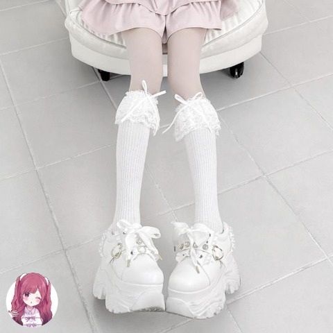 3段のレースとリボンモチーフが特徴のハイソックスです◎