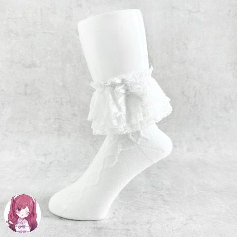 3段レースと2連リボンモチーフが特徴のクルーソックスです◎