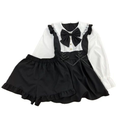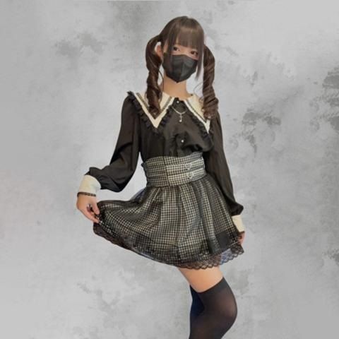 ダークな雰囲気とかわいらしさをMIXし、ブラウスとジャンスカを合わせたようなセットアップに仕上げました♪