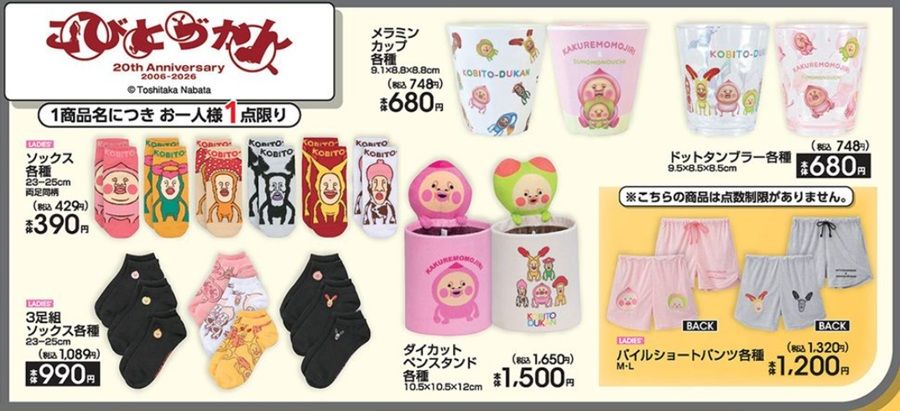 アベイル『こびとづかん』コラボから、パイルショートパンツ、ソックス、メラミンタンブラー、アクリルタンブラー、ペンスタンドなどが2026年2月21日(土)から販売します!