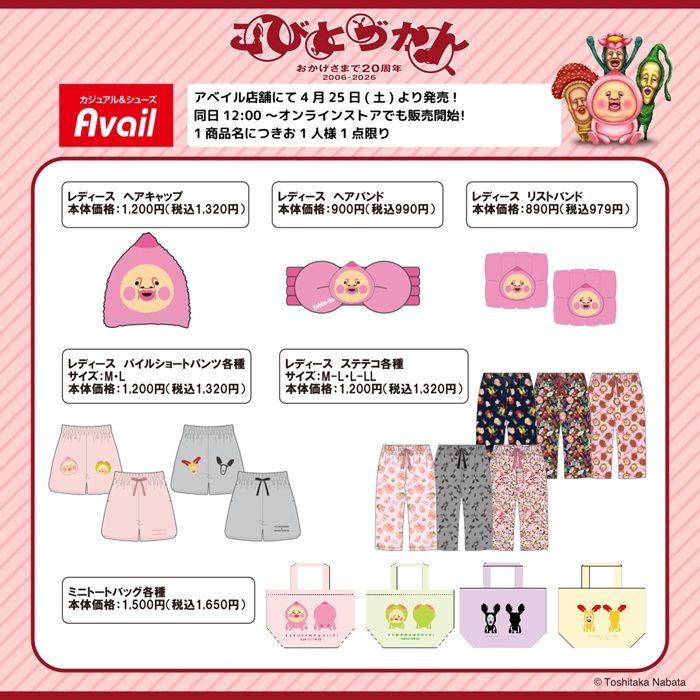 アベイル『こびとづかん』コラボ!ステテコなど夏アパレル、ポーチ、巾着、クッション、タオル、エコバッグ、インテリア雑貨が2026年4月25日(土)より新発売!