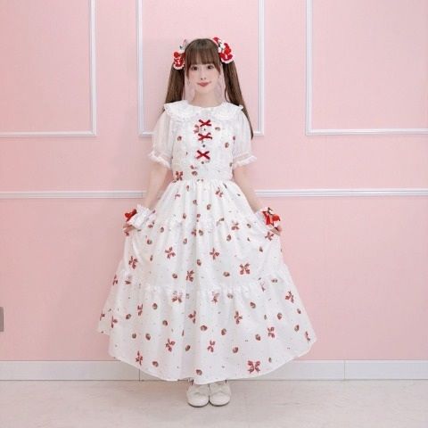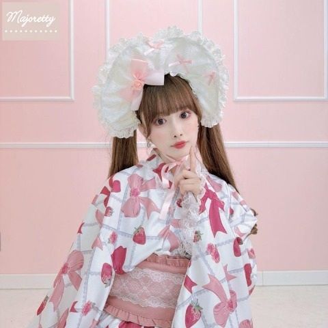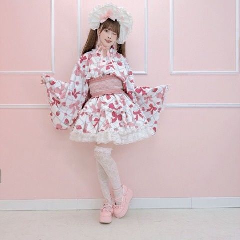 リボン、苺、レース、お花のオリジナルプリントがポイントのロリィタ浴衣セット。