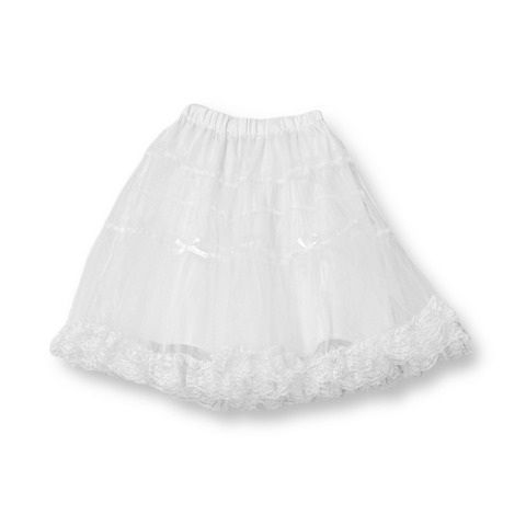 使いやすい丈のパニエはジャンスカやワンピース、スカートの下にはいてボリュームアップさせるのはもちろん、レースやりぼんの装飾を施しているのでパニエが見えるスタイリングもおすすめです◎