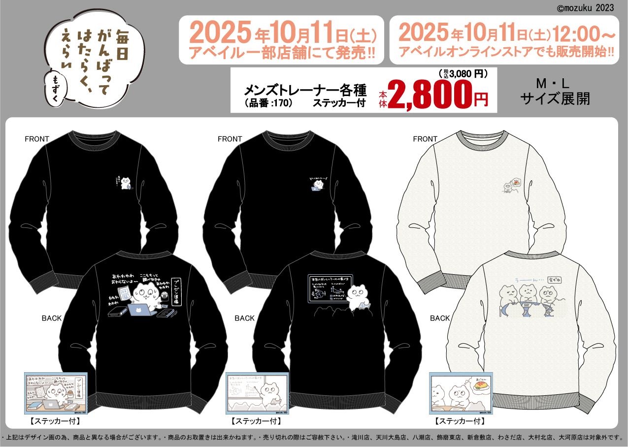 - アベイル『毎日がんばってはたらく、えらい』コラボ!トレーナーが2025年10月11日(土)より発売!