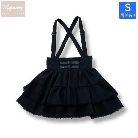 ウエストの合皮ベルトがポイントのサスペンダー付ティアードスカート!