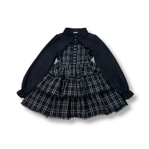 ウエストのアイレット付きベルトでサブカルゴシックに仕上げました。