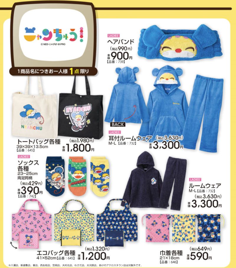 2025年10月18日(土) | 秋冬ルームウェア、トートバッグ、ソックス、エコバッグ、巾着などのグッズ | |