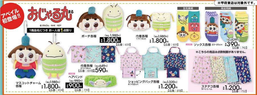 アベイル『おじゃる丸』コラボの発売日、ラインナップ、種類、品番、販売方法、販売状況、再販売、口コミ、オンライン通販、販売店舗、チラシなどをまとめます。