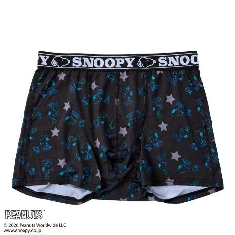 星柄にグラデーションカラーのスヌーピーが際立つ総柄のボクサーブリーフ。