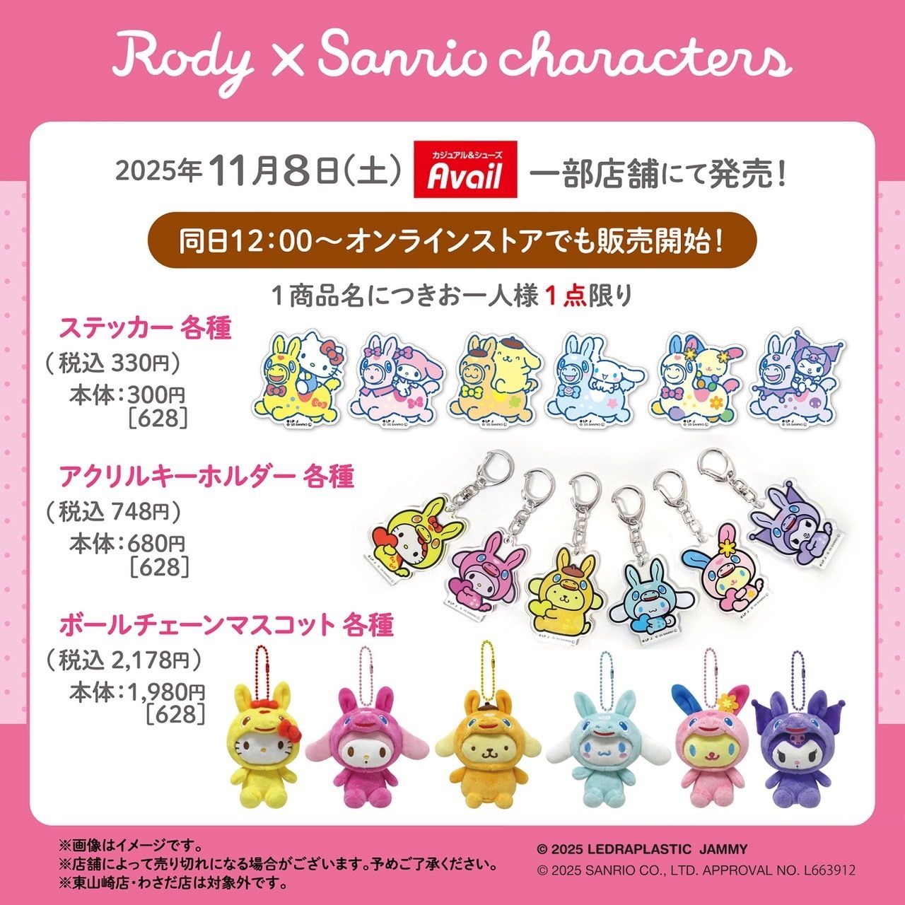 | 2025年11月8日(土) | Rody(ロディ)×サンリオ アクキー、ボールチェーンマスコット、ステッカー |