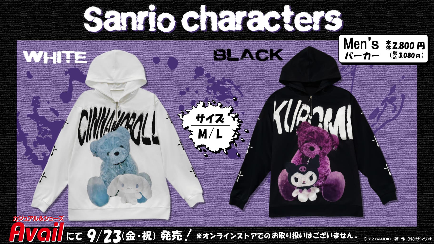 - アベイル『サンリオ』コラボ!メンズ パーカー 2022年9月23日(金・祝)