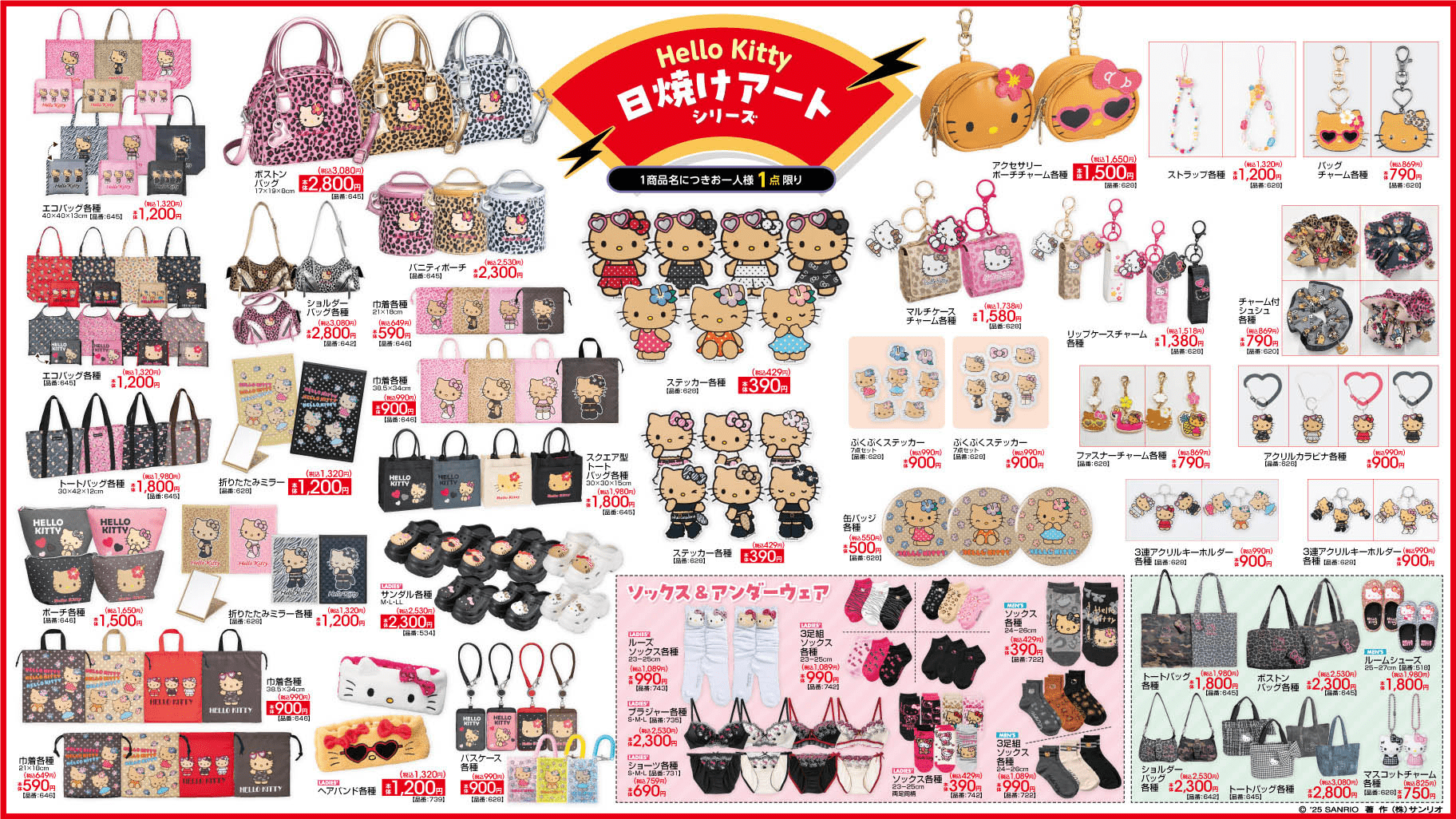 アベイル『サンリオ』コラボ!ウェアコレクション、ブラックアートシリーズ、ステーショナリー&アクセサリー、着ぐるみアートシリーズ、キティの日焼けアートシリーズのグッズが2025年12月27日(土)より新発売!キキララ50周年!