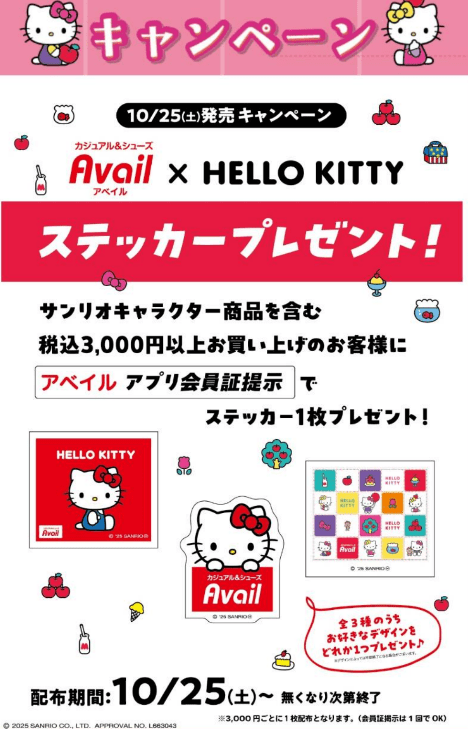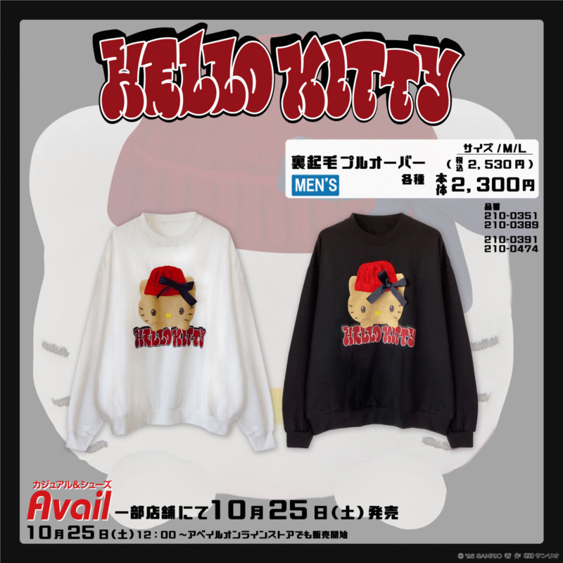 しまむら系列アベイルでは、2025年10月25日(土)~『サンリオ』コラボの新作を販売します!ハローキティ祭りで、キティの誕生日をメインに大型企画が実施!