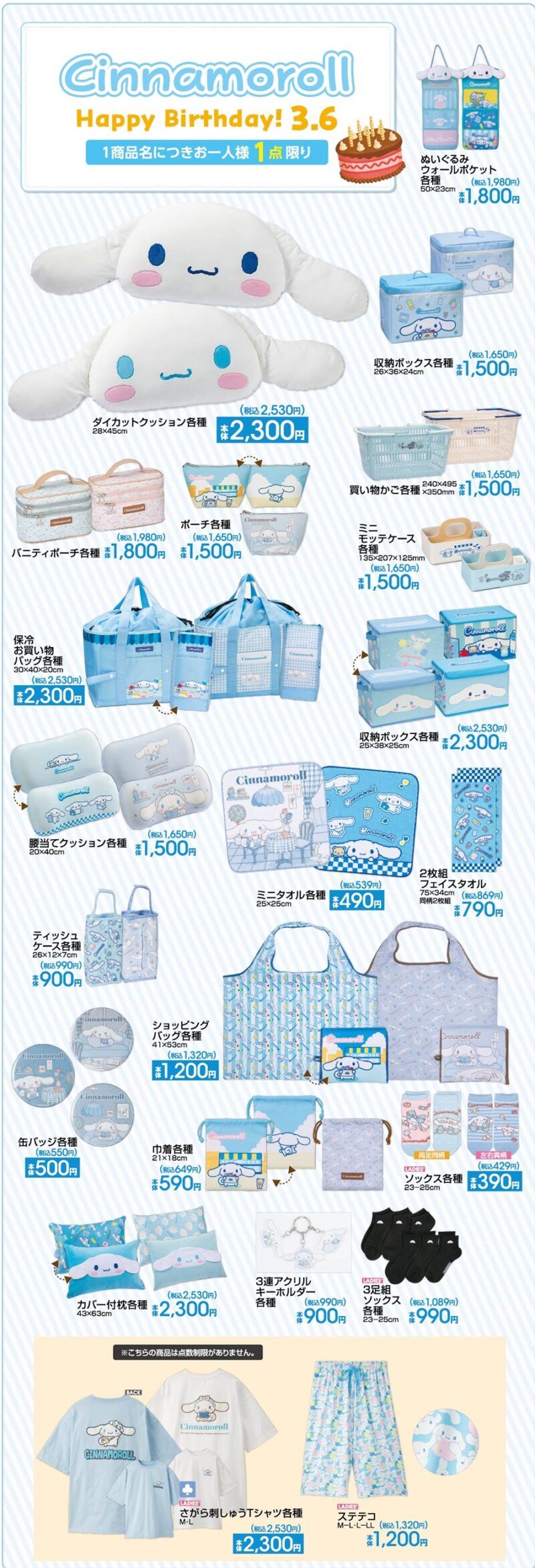 シナモロールの生誕をお祝いする、単体コラボグッズが販売します!