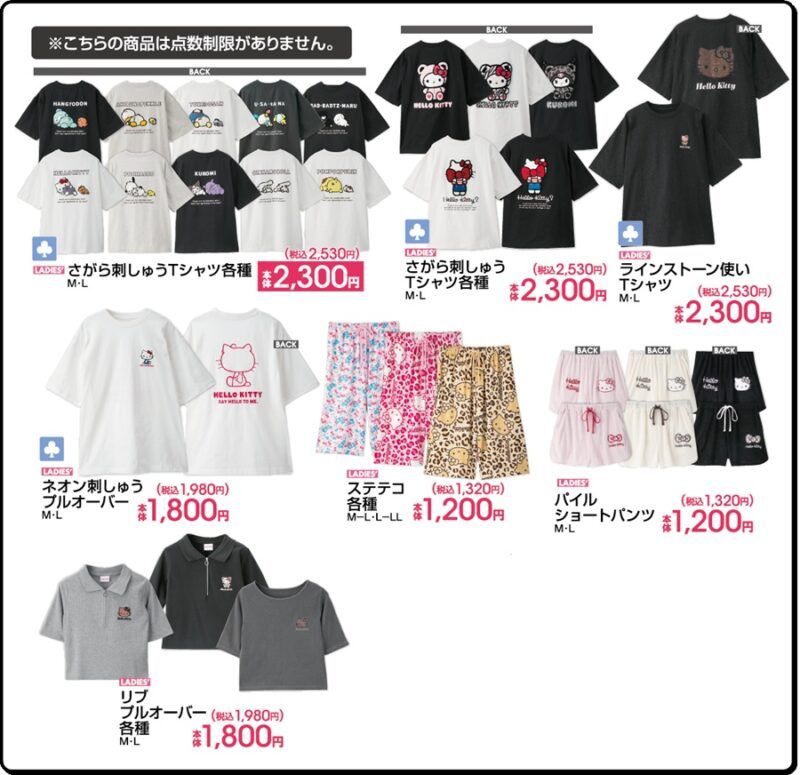 ハンギョドン、シナモロールの誕生日グッズ、ハローキティのアニマル柄キッチン雑貨、Tシャツ、ショートパンツ、ステテコ、サンダル、ソックス、アイマスクアート、ペットグッズで、種類豊富にラインナップ!