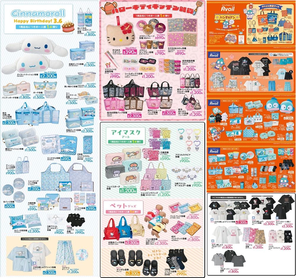 アベイル『サンリオ』コラボ2026年2月28日(土)から発売の、ラインナップ、種類、品番、販売方法、販売状況、再販売、口コミ、オンライン通販、販売店舗、チラシなどをまとめます!