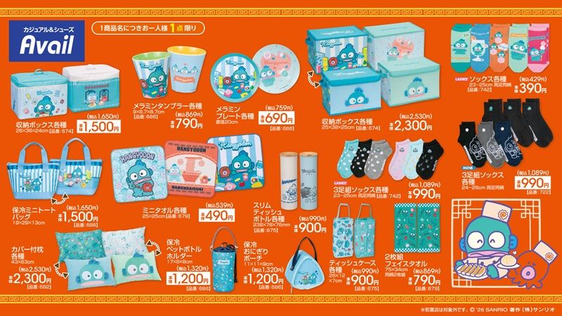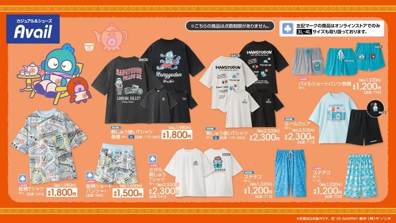 アベイル『サンリオ』コラボ!ハンギョドン、シナモロールの誕生日グッズ、アイマスクアート、ハローキティのアニマル柄キッチン雑貨、Tシャツなどが種類豊富に2026年2月28日(土)より新発売!