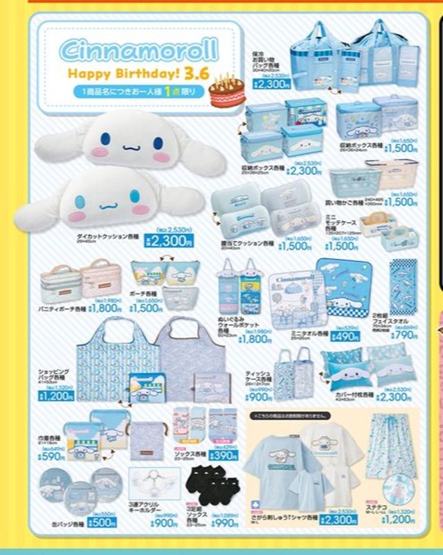 ≪商品ラインナップ≫ アベイル『サンリオ シナモロール』誕生日のコラボグッズ2026年