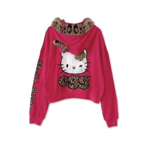 ボアの貼り付けロゴと、日焼けしたヒョウ柄のハローキティがとっても可愛い。
