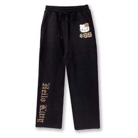 ヒョウ柄ファーの貼り付けと、愛らしいキティのお顔が豪華なデザインを配したこだわりのボトム。