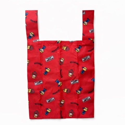 レトロキャラクターの総柄折り畳み式エコバッグ。