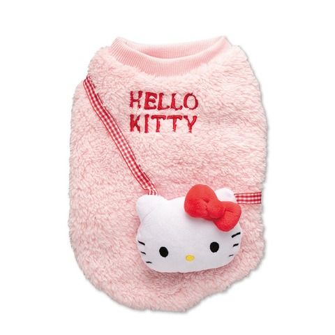 フードを被ればハローキティになりきれちゃうパイル素材で肌触りの良いペット服です。